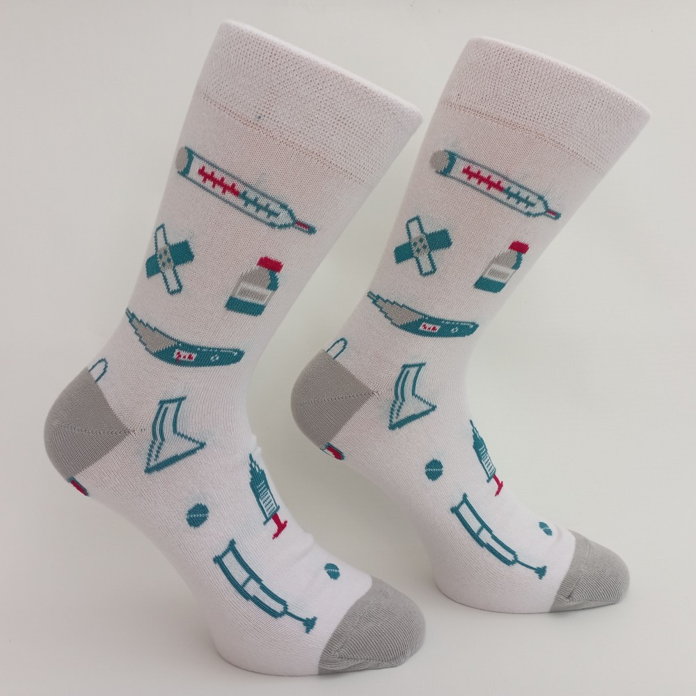 Velikosti 37-46. Ponožky se zdravotnickým motivem - vhodné např. jako dárek pro lékaře, záchranáře, farmaceuty, sestřičky, mediky a ostatní zdravotníky.