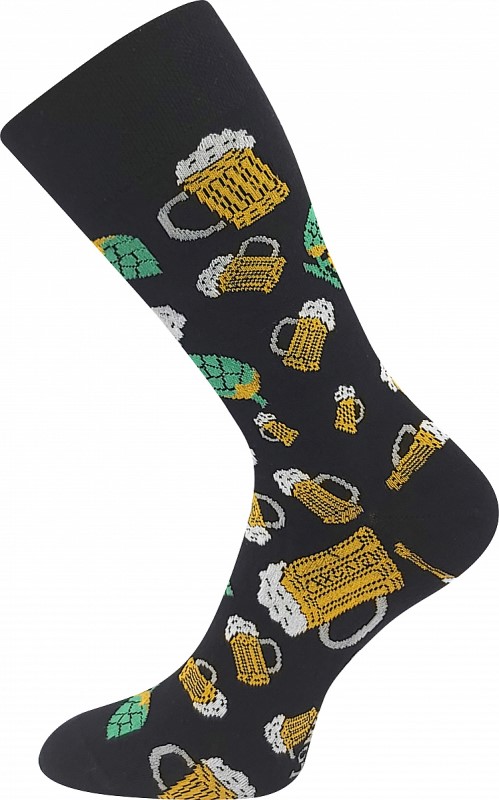 Velikosti 39-50. Pánské „trendy“ ponožky z vysoce kvalitní česané bavlněné příze. S motivem piva. Vhodné pro každodenní nošení. celý popis
