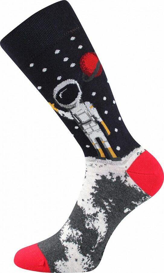 Jsou to stylové ponožky s motivem vesmíru, s astronautem.