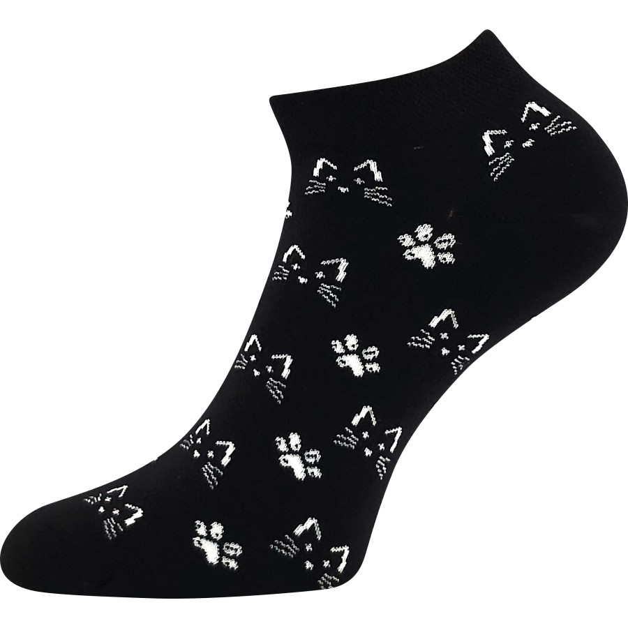 Módní dámské nízké obrázkové ponožky se vzorem koček, z kvalitní česané bavlněné příze.