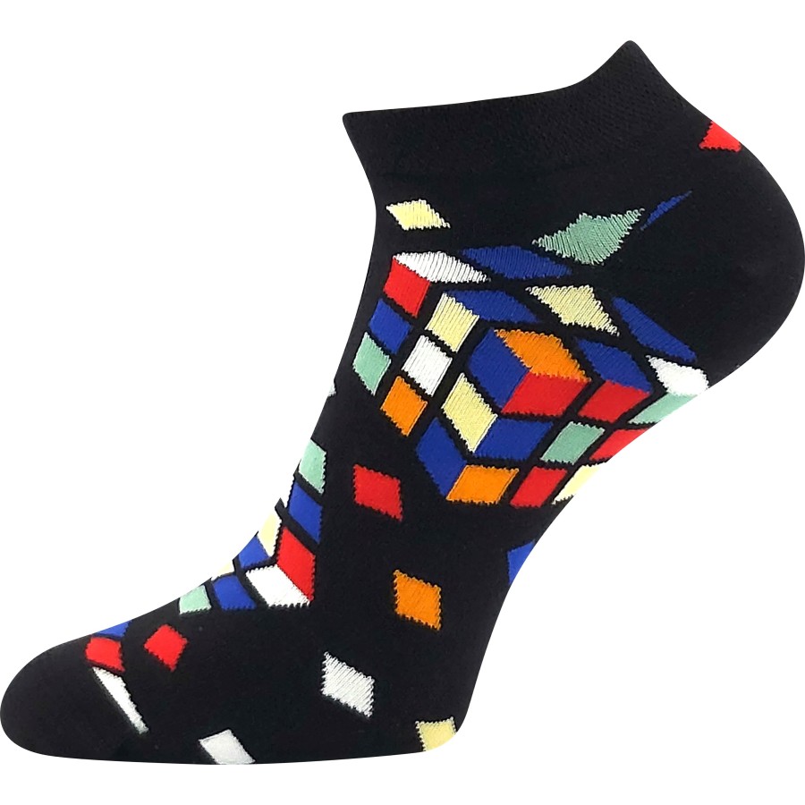 Módní nízké obrázkové ponožky se vzorem rubikovy kostky, z kvalitní česané bavlněné příze.