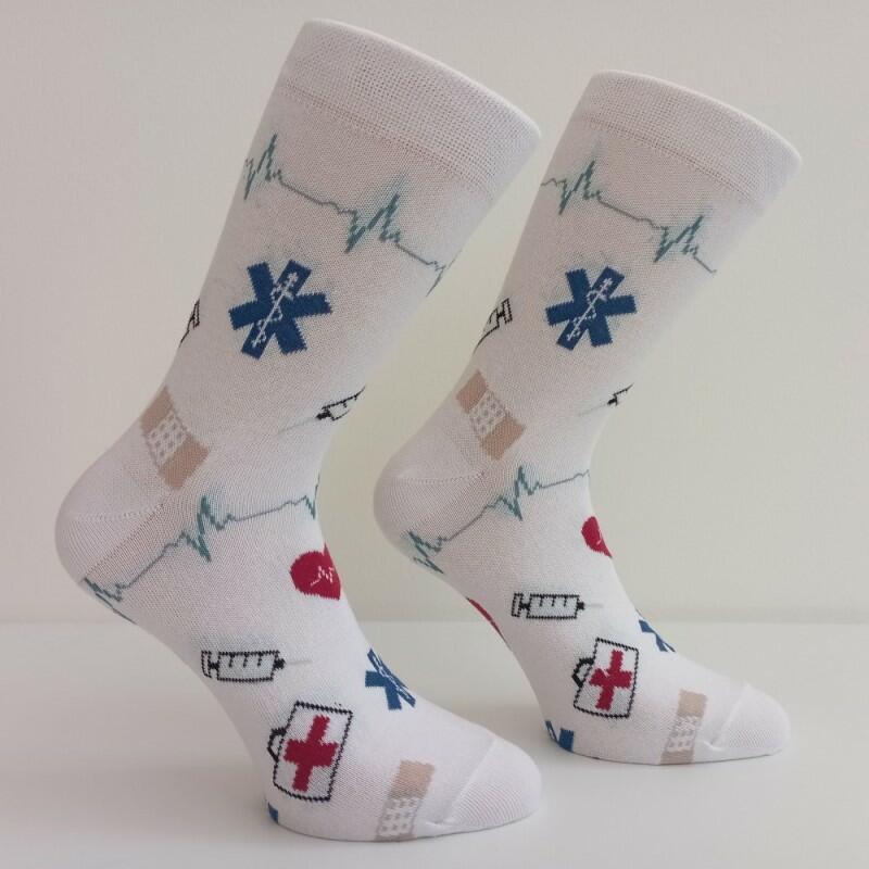 Ponožky se zdravotnickým motivem - vhodné např. jako dárek pro lékaře, záchranáře, farmaceuty, sestřičky, mediky a ostatní zdravotníky.