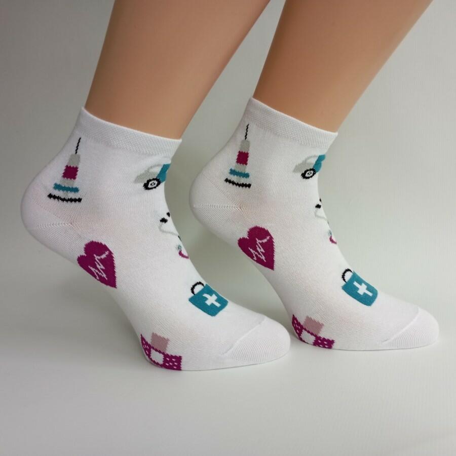 Velikosti 37-46. Kotníkové ponožky se zdravotnickým motivem - vhodné např. jako dárek pro lékaře, záchranáře, farmaceuty, sestřičky, mediky a ostatní zdravotníky.