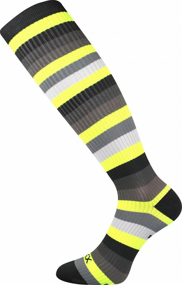 Velikosti 35-46. Kompresní pruhované podkolenky vhodné nejen pro sport, ale také pro dlouhodobé stání nebo sezení v zaměstnání, dlouhodobé cestování. celý popis