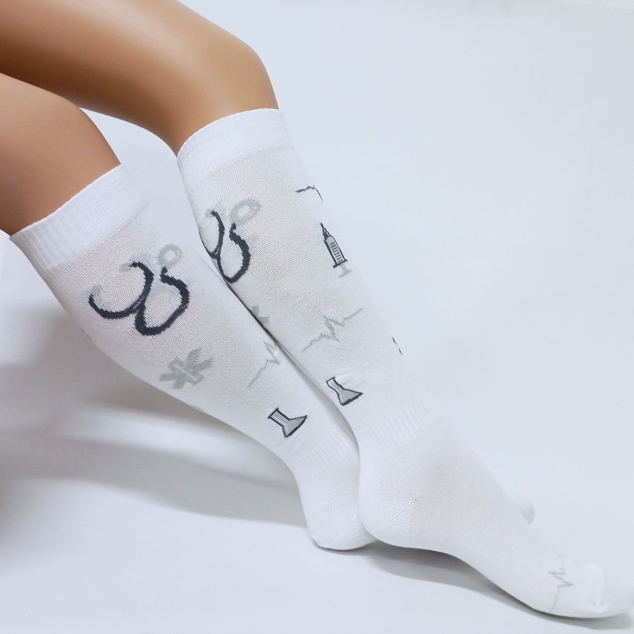 Podkolenky se zdravotnickým motivem - vhodné např. jako dárek pro lékaře, záchranáře, farmaceuty, sestřičky, mediky a ostatní zdravotníky.