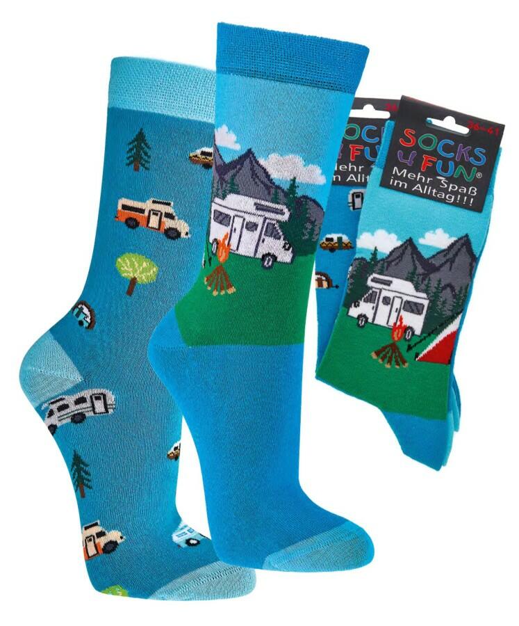 Originální dámské/pánské trendy ponožky s motivem kempování, s karavany.