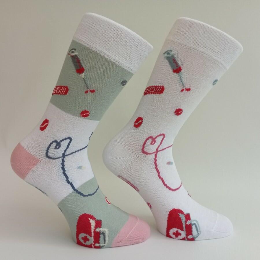 Ponožky se zdravotnickým motivem - vhodné např. jako dárek pro lékaře, záchranáře, farmaceuty, sestřičky, mediky a ostatní zdravotníky.