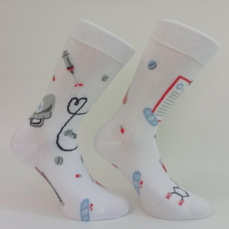 Ponožky se zdravotnickým motivem - vhodné např. jako dárek pro lékaře, záchranáře, farmaceuty, sestřičky, mediky a ostatní zdravotníky.