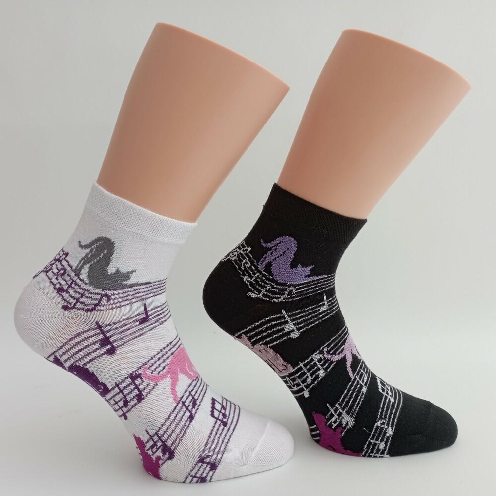 Dámské kotníkové ponožky pro milovníky hudby a koček. Ponožky z kvalitní dlouhovlákné bavlny.