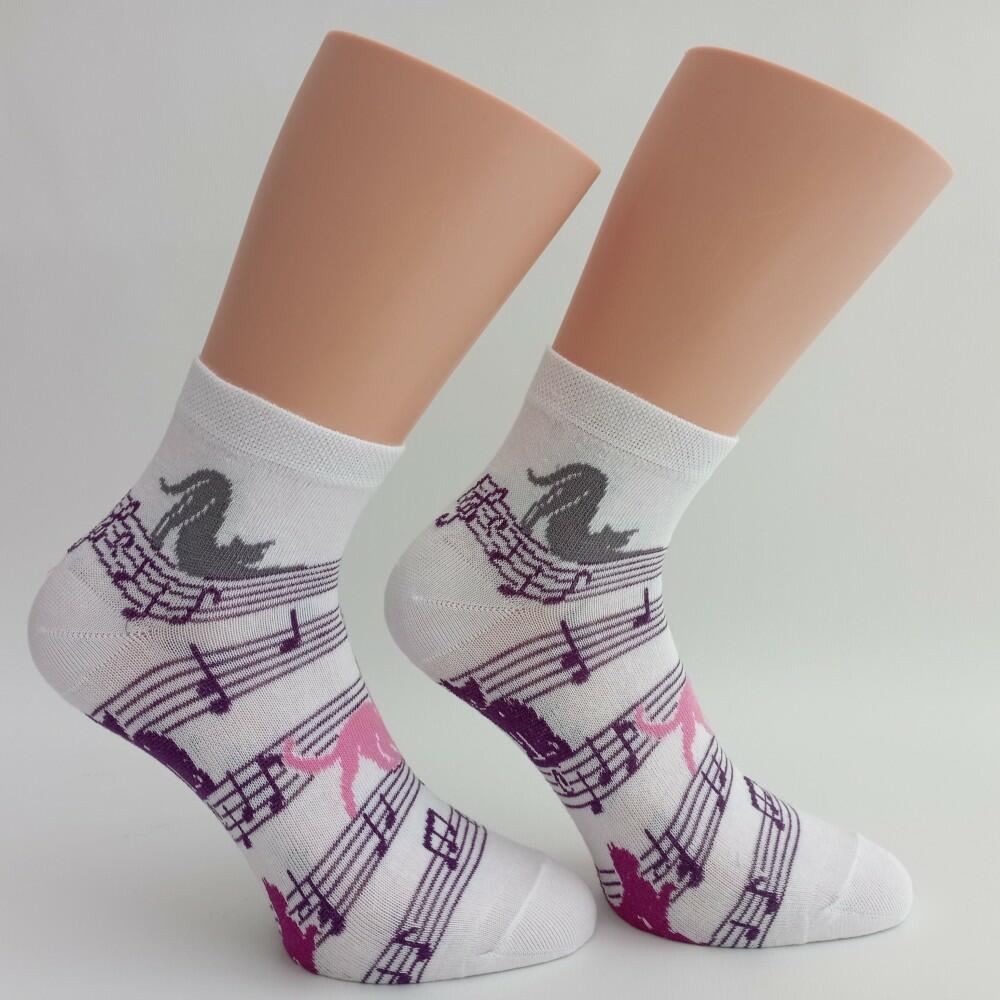 Dámské kotníkové ponožky pro milovníky hudby a koček. Ponožky z kvalitní dlouhovlákné bavlny.