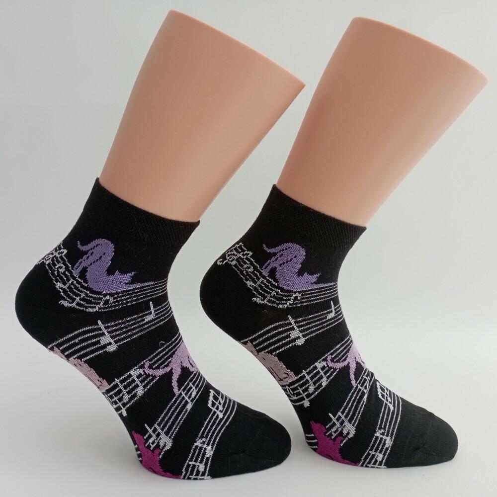 Dámské kotníkové ponožky pro milovníky hudby a koček. Ponožky z kvalitní dlouhovlákné bavlny.