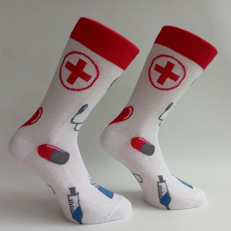 Ponožky se zdravotnickým motivem - vhodné např. jako dárek pro lékaře, záchranáře, farmaceuty, sestřičky, mediky a ostatní zdravotníky.