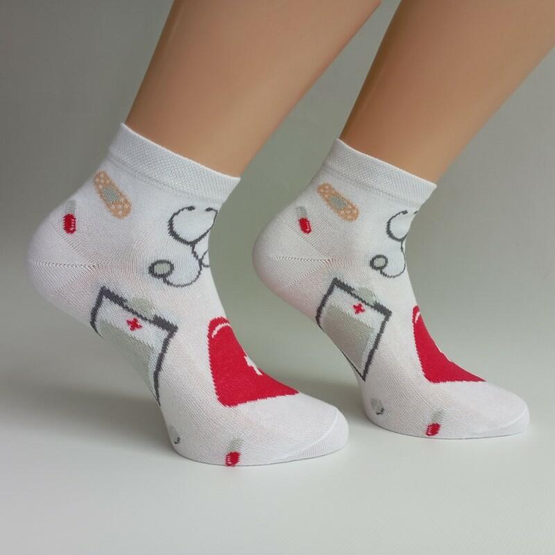 Kotníkové ponožky se zdravotnickým motivem - vhodné např. jako dárek pro lékaře, záchranáře, farmaceuty, sestřičky, mediky a ostatní zdravotníky.